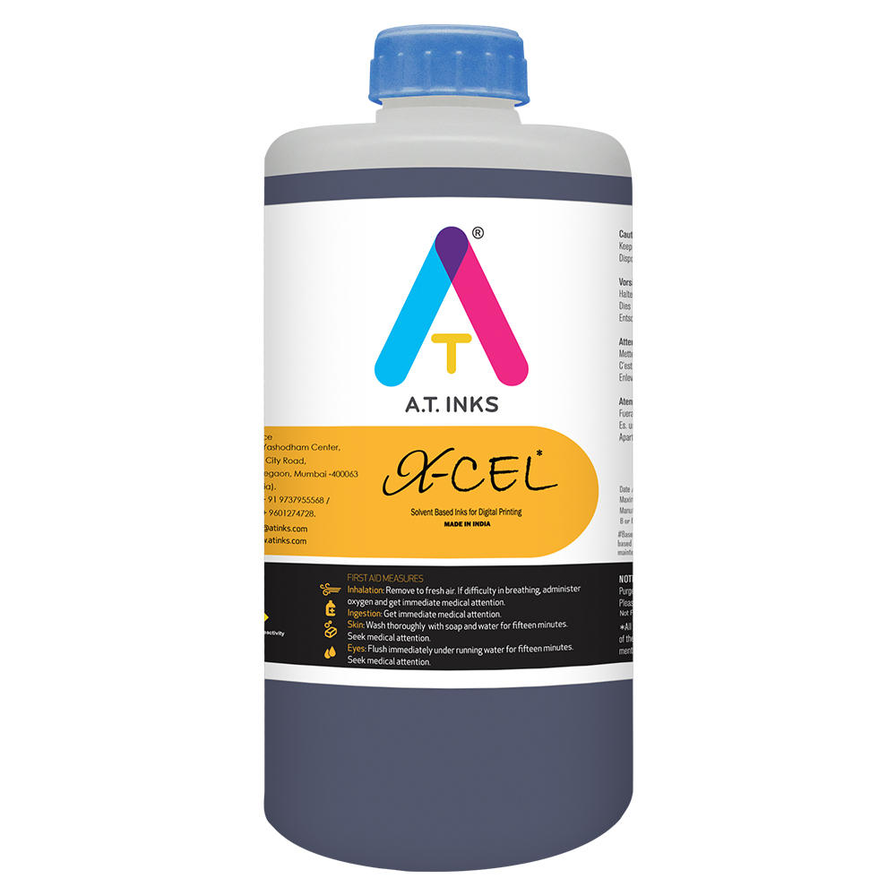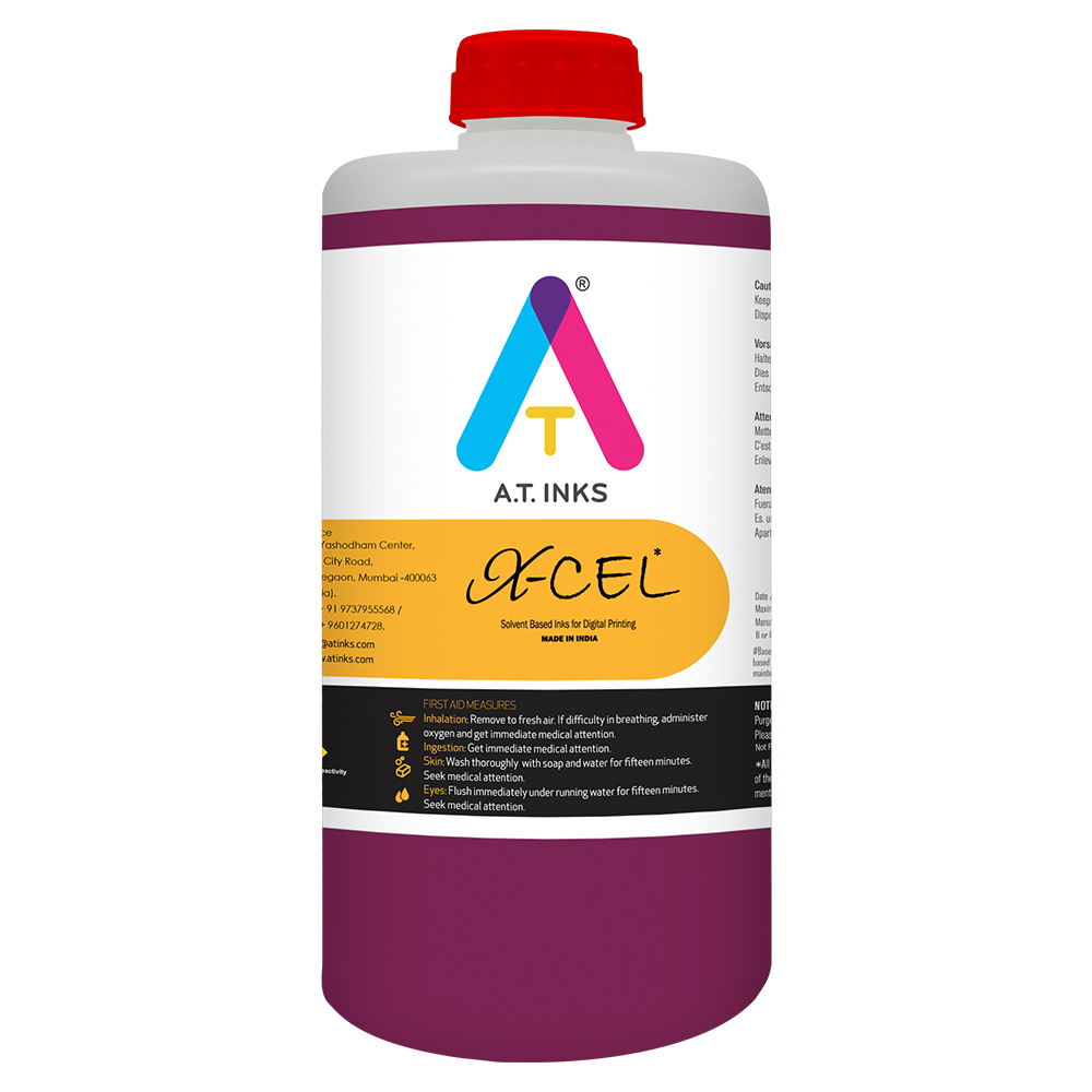 A.T. Xcel is solvent based Inkjet printing ink .Suitable for Xaar*, Spectra*, Konica Minolta* and Seiko* print heads 35pl and higher. Good scratch and smudge resistance Up to 18 month of resistance to UV rays outdoors. It is designed to have long outdoor life with excellent color gamut and also Shows excellent jetting performance and reliability on roll-to-roll printers.